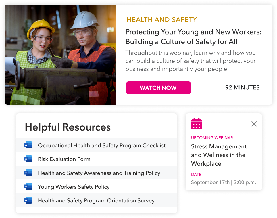 Stay current with the latest health and safety trends. Our webinars, led by experienced subject matter experts, offer practical insights and actionable next steps. Plus, attendees won’t walk away empty-handed. Participants get a free downloadable guide or toolkit to help apply their newly gained knowledge immediately.