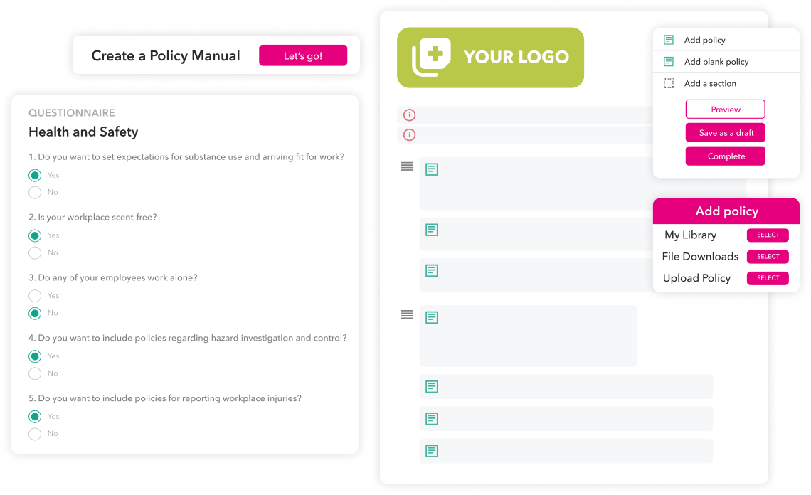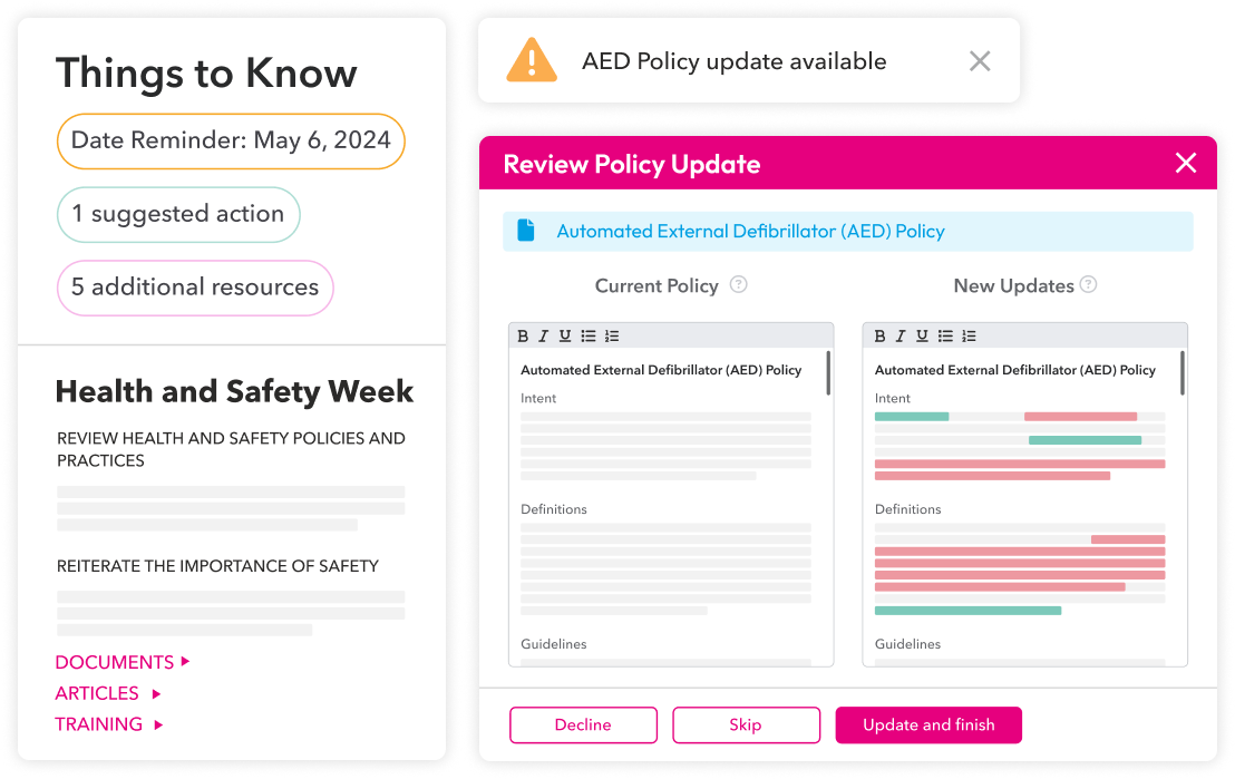 Roll out health and safety policies and documents quickly by using our library of compliant templates to suit your needs. Save time managing these with our document management system which allows you to collect digital signoffs and manage these records easily.