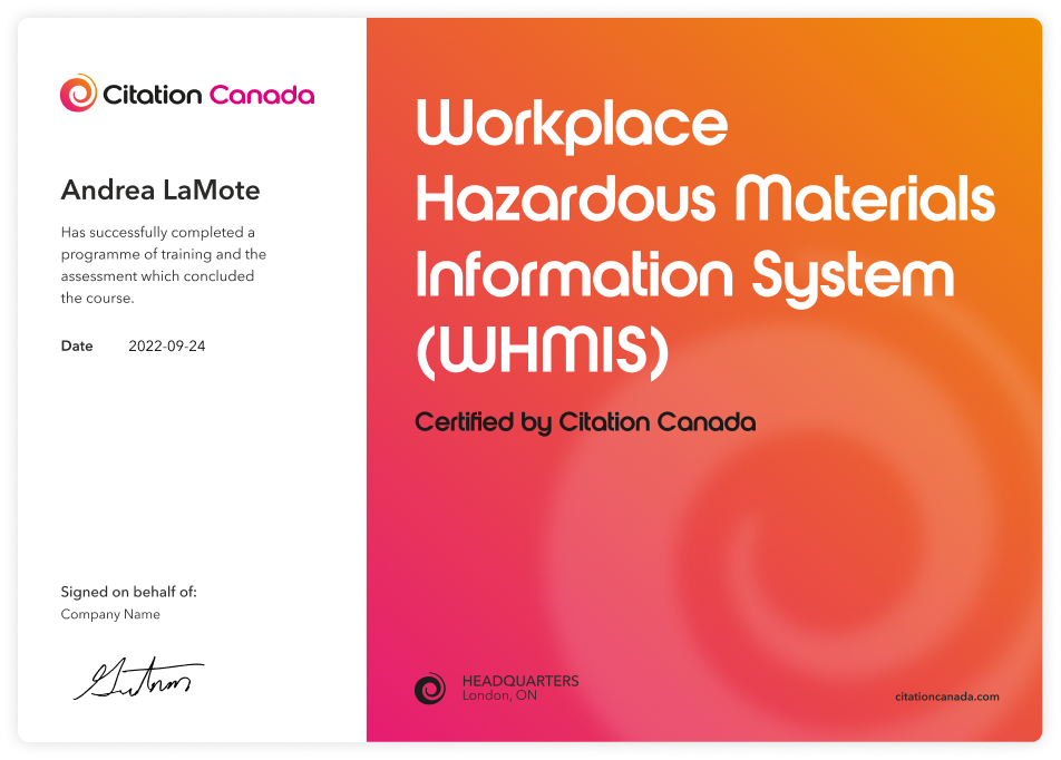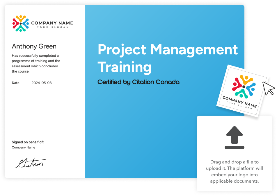 Use your organization’s logo and colours to provide a personalized feel to our training certificates. Through our HR Services, we can upload and host custom, brand-aligned courses you have created to reflect your specific needs. Let us help you drive excellence!
