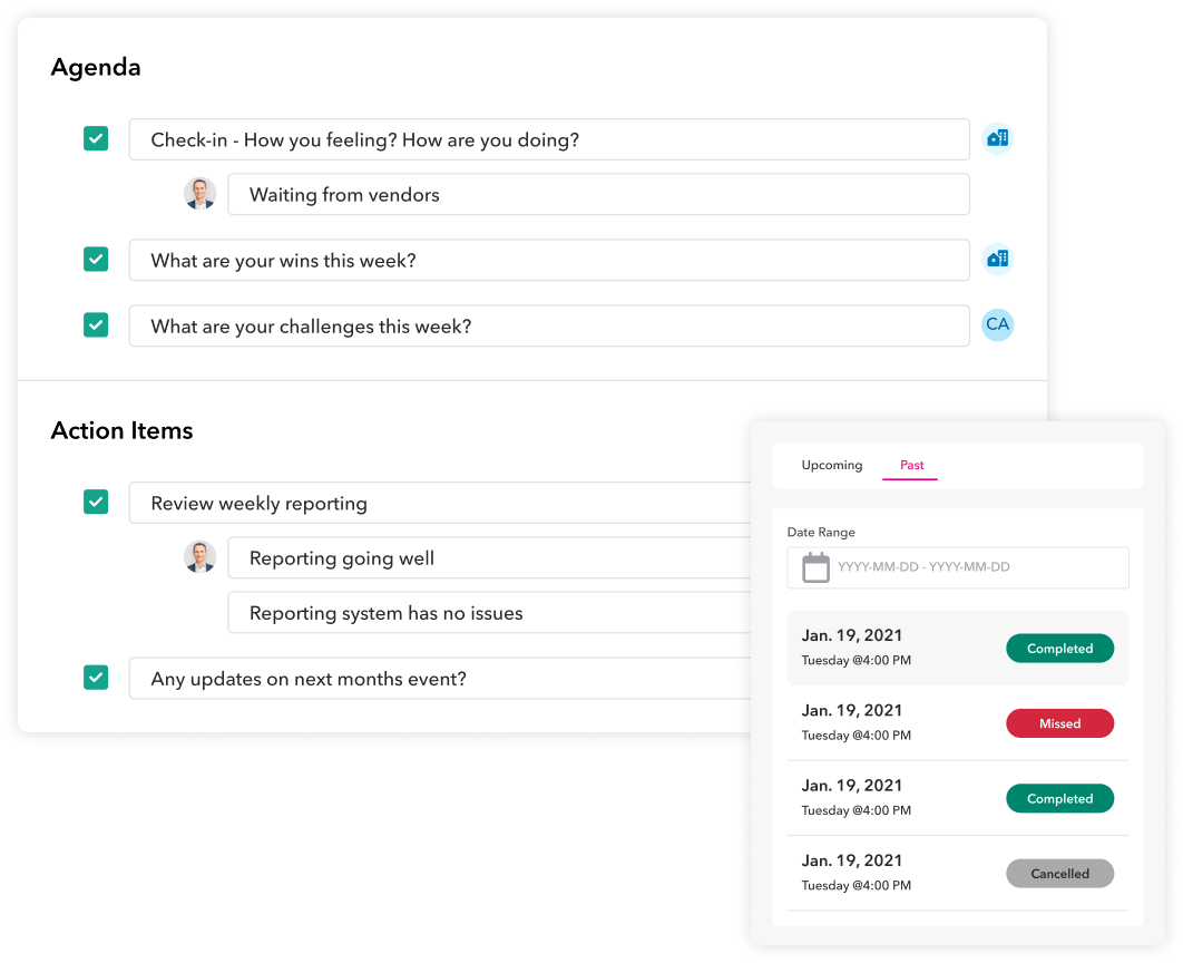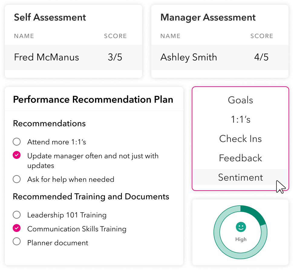 Measure employee productivity, wellbeing, and energy levels with fully customizable employee updates, 1:1s, and self-evaluationsRegular updates keep you informed so you know when to step in and support employeesSet meetings with collaborative agendas or provide employees with helpful resources from our ever-growing library of dedicated HR policies and content