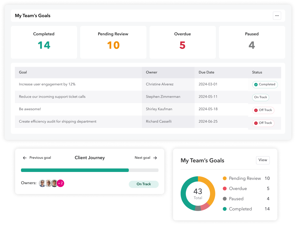 Eliminate the need for multiple HR tools with our integrated system of connected software. View all your metrics anytime with our one-of-a-kind performance snapshots. Managers can view team members’ progress to drive performance while employees stay focused on their own goals.